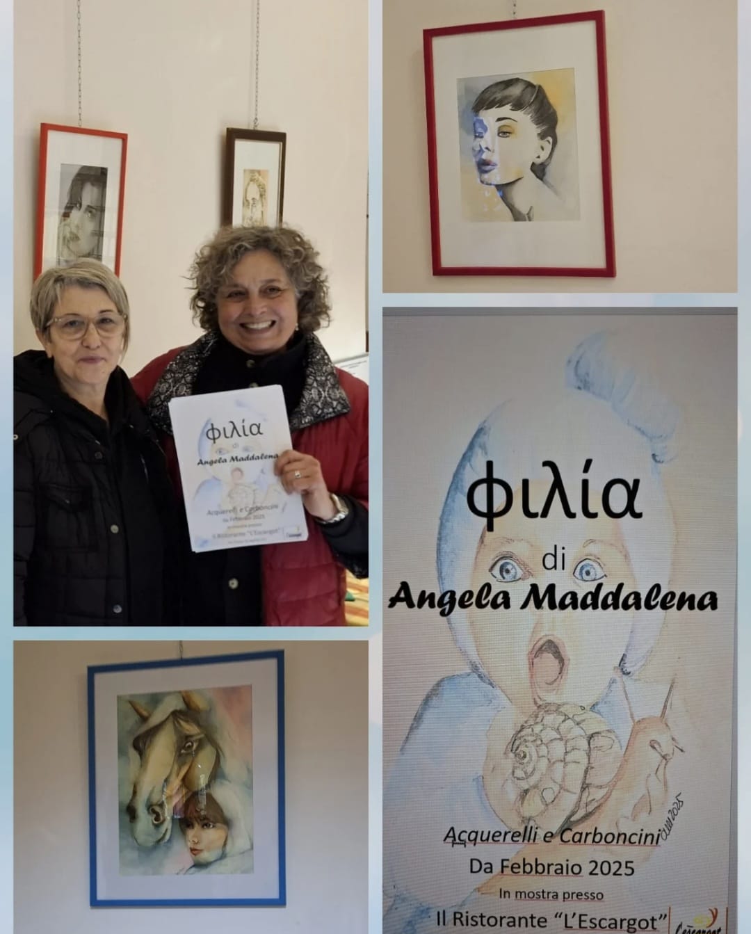 Dal mese di Febbraio 2025, una serie di ritratti di personaggi famosi e non, realizzati ad acquerello e carboncino, sono esposti presso il Ristorante L'escargot.